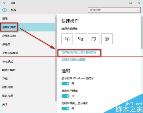 7、在這里我們點擊通知和操作——選擇在任務欄上顯示哪些圖標