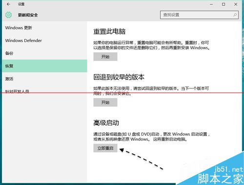 4、點擊高級啟動下的“立即重啟”按鈕,