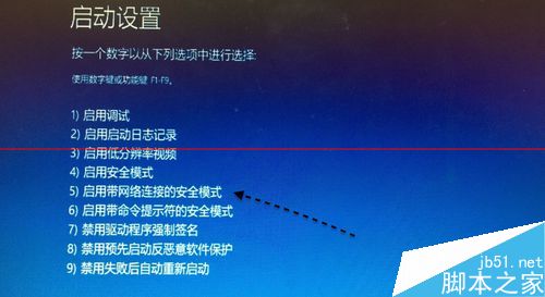9、如果想要進入帶有網絡連接的安全模式,請根據屏幕上的提示按下數字5鍵,即可進入。