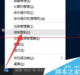 1、右擊桌面左下角的“Windows”按鈕,從其右鍵菜單中選擇“控制面板”項。