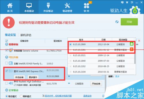 5、接下來我們需要更新一下顯卡驅動程序。建議大家使用“驅動人生6“來更新Windows10正式版驅動程序。在程序主界面中,切換到“本機驅動”選項卡,選擇最新的顯卡驅動版本號,點擊“立即修復”按鈕即可修復顯卡驅動。