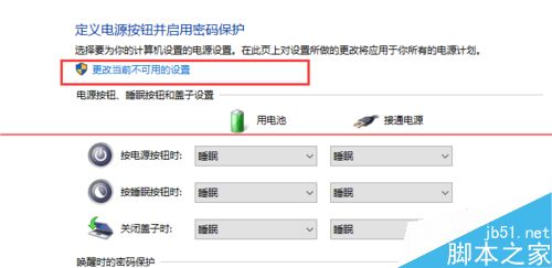 3、在下一菜單里面,選擇更改當(dāng)前不可用的設(shè)置,然后拖動(dòng)滾動(dòng)條,拉到一直到如圖所示啟動(dòng)快速啟動(dòng)(推薦)的按鈕選項(xiàng),打勾即可