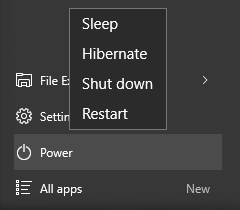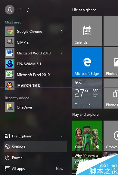 默認(rèn)情況下,點擊Win 10開始菜單中的“關(guān)機(jī)”按鈕彈出的菜單中沒有“休眠”選項,下面我們就通過設(shè)置來打開休眠選項。