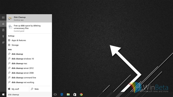 首先你需要在屏幕左下角的Cortana搜索框里鍵入“Disk Cleanup”命令并運行它。