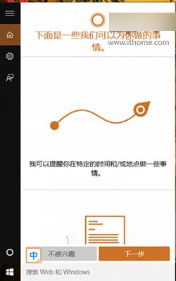 具體來說,用戶點開屏幕左下角“搜索Web和Windows”時,該建議就會彈出。小娜會從記事本、語音提醒、智能搜索、跟蹤航班、包裹等各個方面向用戶介紹自己的功能。點擊進入,用戶則可以瀏覽更詳細的使用指南,讓第一次與小娜見面的你不再抓耳撓腮、無所適從。