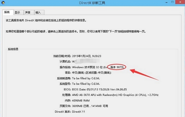 在出來的DirectX診斷工具下面找到操作系統(tǒng),那個(gè)操作系統(tǒng)最后面就有一個(gè)版本。這個(gè)版本就是想要的那個(gè)版本號(hào)。