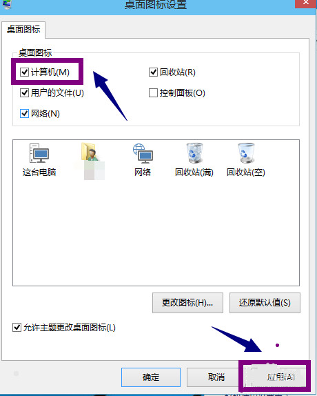 將我的計算機勾選上然后點擊“應用”,如下圖所示