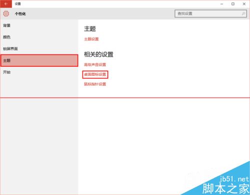 3、在個性化設置界面依次點擊主題-桌面圖標設置