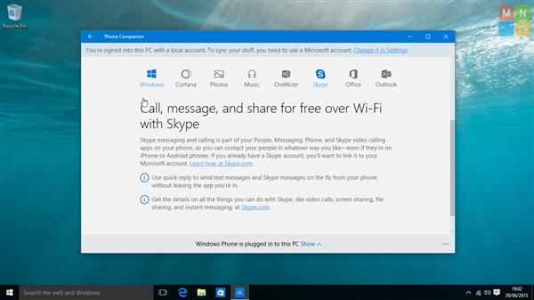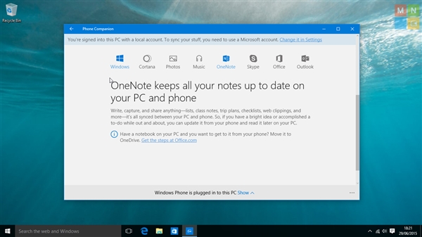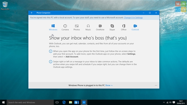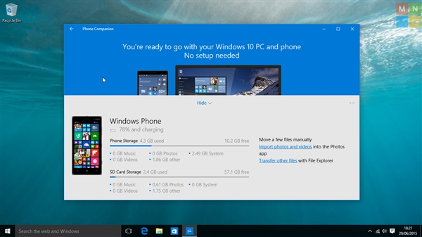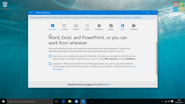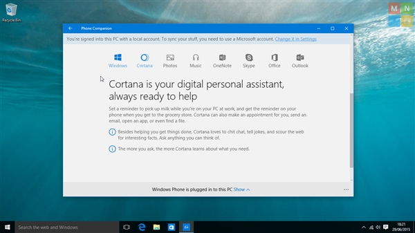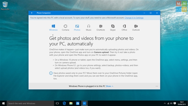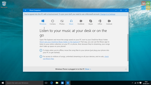 手機伴侶應用允許用戶同步 Windows 10 桌面設備和智能手機上的音樂、文件、圖片。