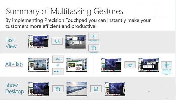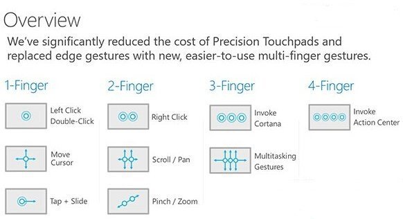 此外微軟也在WinHEC會上現場演示了針對觸屏與觸控板新增的多種操控手勢,具體如下:
