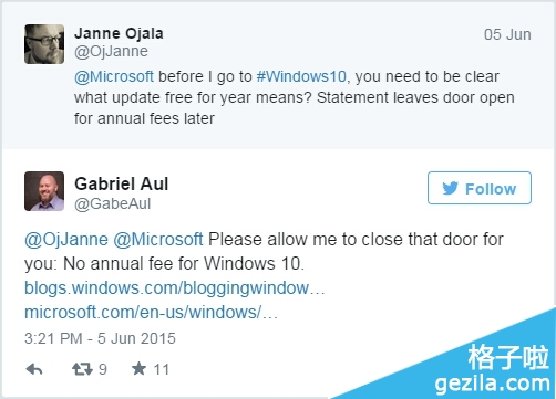 自Windows 10預(yù)覽版推出以來,外界就紛紛猜測微軟會(huì)嘗試轉(zhuǎn)向類似于Office 365等服務(wù)的“訂閱式收費(fèi)”,而這顯然會(huì)動(dòng)搖人們升級(jí)到Windows 10的意愿。此前,微軟曾表示W(wǎng)indows 7和Windows 8.1的用戶將能夠在第一年內(nèi)免費(fèi)升級(jí)至Windows 10。不過,為了打消人們的疑慮,微軟Insider項(xiàng)目負(fù)責(zé)人Gabriel Aul已經(jīng)通過Twitter發(fā)表承諾——Windows 10將不會(huì)收取年費(fèi),希望用戶們放寬心!