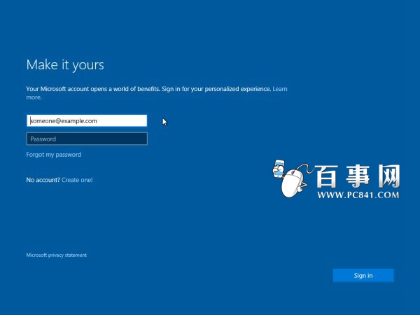 ▲Win10預覽版10122中的創建賬號頁面