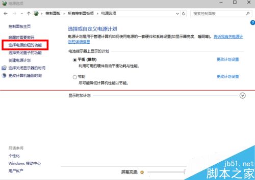 3、在“電源選項”窗口里 我們點擊“選擇電源按鈕的功能”
