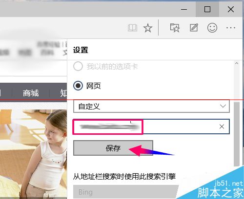 4、選擇主頁為自定義后,你可以手動(dòng)輸入網(wǎng)址,點(diǎn)擊保存就設(shè)置成功了
