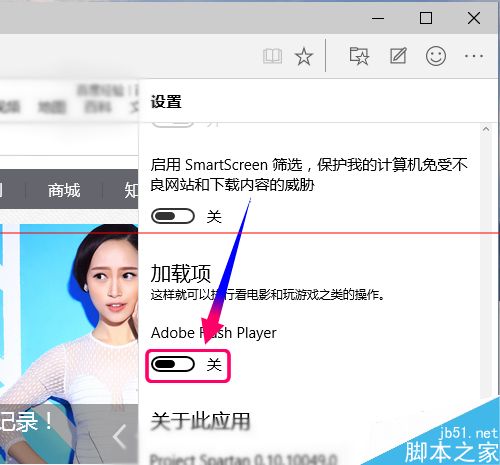 7、為什么我用斯巴達(dá)瀏覽器無法打開QQ農(nóng)場等Flash游戲呢,或者打開在線視提示無法加載成功呢?那是因?yàn)镕lash Player沒有開啟所致,怎么打開Flash功能呢?在選項(xiàng)里拉到最底下找到Adobe Flash Player選項(xiàng),點(diǎn)擊開關(guān)為啟用狀態(tài),重新打開斯巴達(dá)瀏覽器就正常了