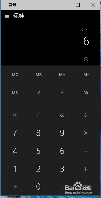 如圖所示就是第一次打開的計算器的樣子。默認第一次打開的功能是標準,我們在這里可以做做簡單的加減乘除的計算。另外,根號的使用要先輸入數字再點擊根號,1/x即倒數的使用也要先輸入數字再點擊1/x倒數功能。