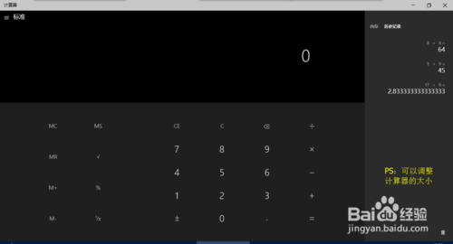 我們還可以通過在計算器的邊界鼠標變為水平調整或垂直調整時按住鼠標左鍵不動移動鼠標或者最大化等調整計算器在桌面上的大小,這樣我們可以合理利用桌面的屏幕。