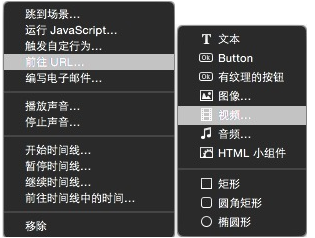 創(chuàng)建了元素或符號后,我們可以為這些元素增加操作后的行為,比如我們可以選擇鼠標輕點、鼠標移至時和鼠標移除時,元素和符號發(fā)生的操作,包括觸發(fā)自定義行為ie、跳轉場景,運行 JS,以及播放和停止聲音等。