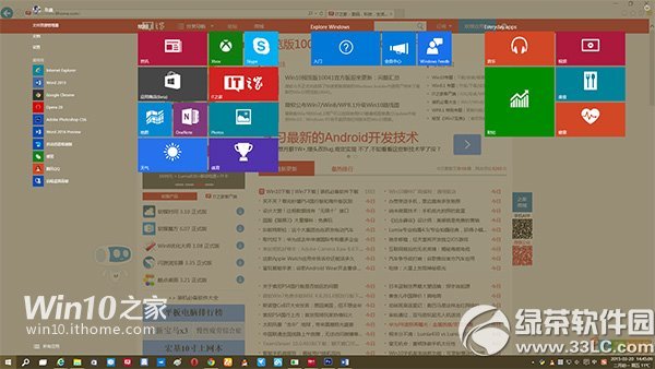 按照微軟的設計,開始屏幕狀態下背景應該只能見到桌面壁紙,而不應該見到其他已有窗口。但在Windows10預覽版10041中,由于開始屏幕和開始菜單支持透明效果,用戶在使用開始屏幕或者平板模式的時候,會發現開始屏幕只是單純覆蓋在當前窗口之上,并沒有根據微軟要求只顯示桌面壁紙。這樣雖然不算難看,但會在一定程度上影響用戶的使用體驗,造成視覺困難。