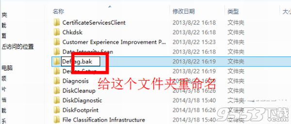把文件夾“Defrag”重命名為“Defrag.bak”
