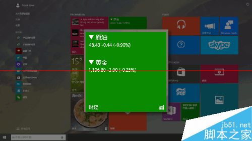 1、打開財經應用。 點擊新的開始 菜單,找到財經 磁貼。設置好的財經磁貼,會定時刷新股市、期貨的實時報價。