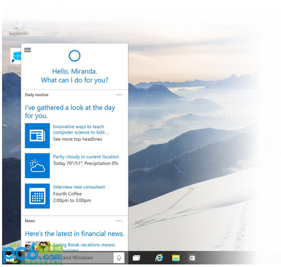 Windows Phone全屏體驗不同,Win10 Cortana將采用”應用”的形式,支持輸入提問和小窗口詢問來喚醒。