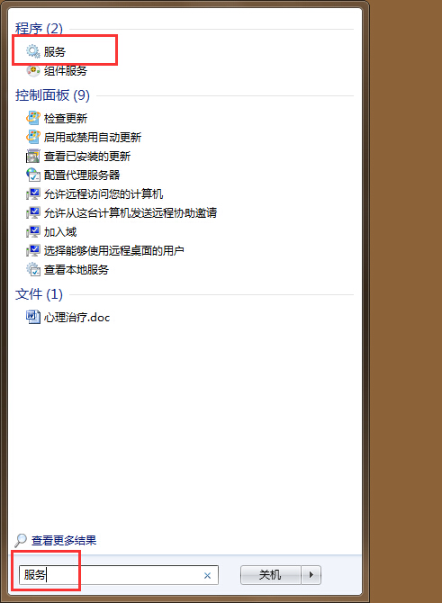 1.打開開始菜單,在搜索程序和文件中輸入“服務”打開服務進入下一步操作。如下圖所示