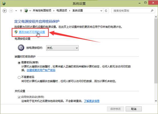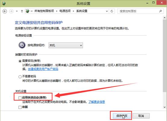 4.這里直接取消勾選“啟用快速啟動(推薦)”點擊“保存修改”完成設(shè)置。如下圖所示