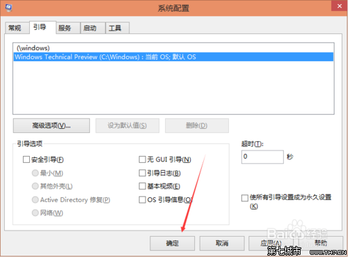 4、將雙系統的默認啟動系統設置好后,再點擊確定,如下圖所示。