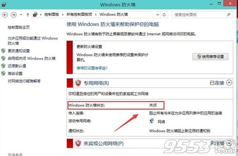 4、再到Windows 防火墻看看在狀態這里看到的就是關閉的狀態。