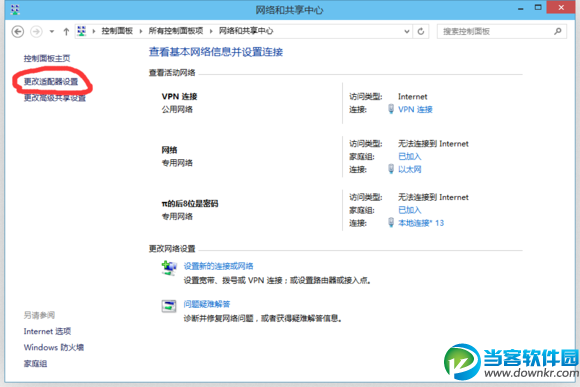 6、依次打開“控制面板-網絡和internet-網絡連接”,更改適配器