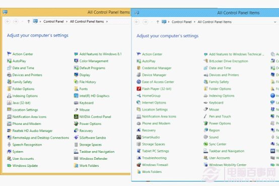 除了顏色,這兩款操作系統(tǒng)的圖標看上去非常不同。微軟對于扁平化的追求要更激進一些,徹底放棄了漸變效果。簡潔性和大量藍色的使用讓我們想起了曾經(jīng)的Windows 95/98,但精細程度和對比度都更高了。