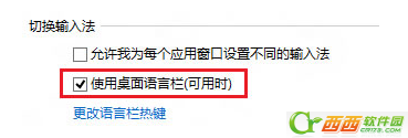 如果您使用的是Win8系統,請先調出系統的語言欄,方法是:打開控制面板 → 時鐘、語言和區域 → 語言 → 高級設置 → 勾選使用桌面語言欄