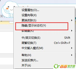 2、在輸入法狀態欄上右鍵單擊選擇隱藏/顯示狀態欄