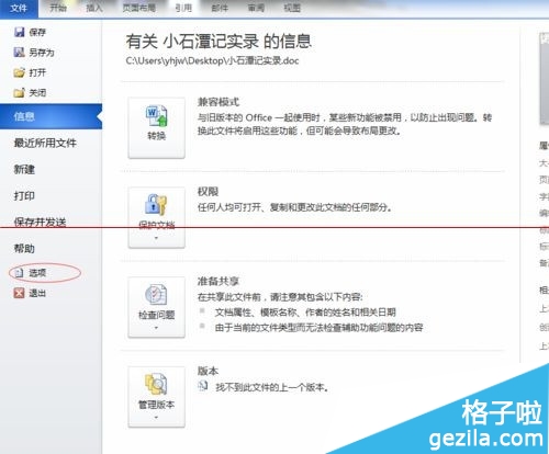 4、在word中點擊“文件”,選擇“選項”。