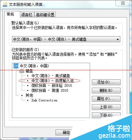3、在彈出的窗口中,通過“上移”“下移”調整輸入法順序,將你習慣的輸入法提前。比如我用的百度輸入法,提前了。一般調整到第二位即可。以保持默認的輸入狀態。