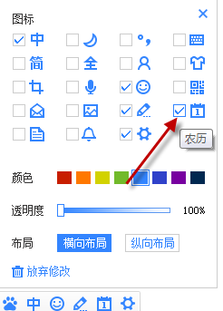 3、勾選之后,日歷功能就會顯示在輸入法的工具欄上,點擊日歷圖標就會自動進行下載日歷插件