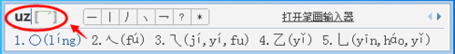 7、如果不知道那些特殊符號的拼音,可以直接打“uz”,可以打出很多特殊符號了。并且后面還會跟著有這個符號的拼音。如下圖所示。