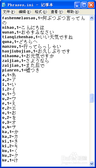 然后把4所顯示的內容復制粘貼到[Phrases.ini]所顯示的最后一行,然后關閉保存即可。(PS:如果看懂是怎么編輯短語的可以自己試著往里面添加短語)
