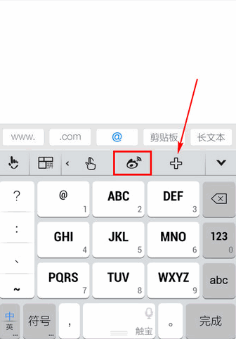 2.找到【微博】標志,如果沒有,請點擊【+】!