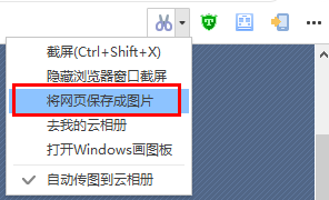 第二步,點擊截圖右邊的倒三角圖標,選擇將網頁保存成圖片