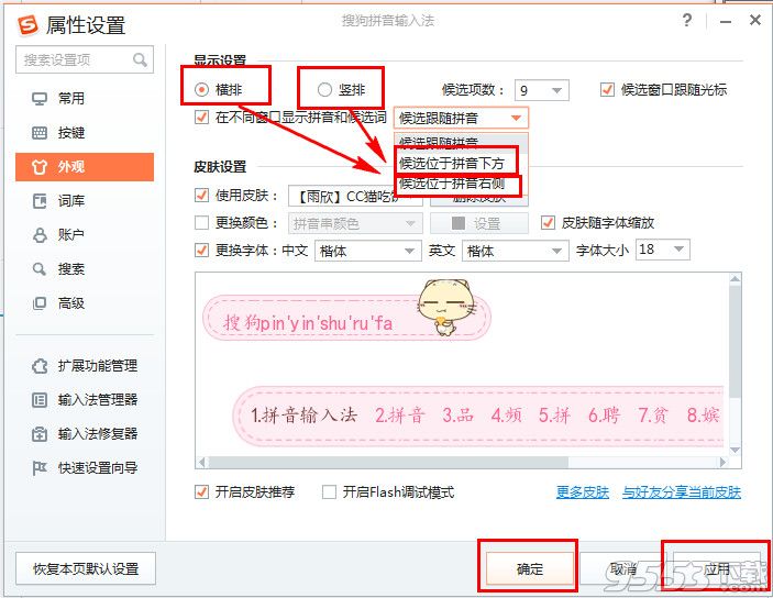 2、在屬性設(shè)置===外觀===顯示===大家可以根據(jù)自己的喜好來設(shè)置==應(yīng)用==確定