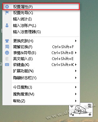首先我們右鍵點擊搜狗輸入法浮動窗,在彈出的菜單中點擊進入到“設置屬性”: