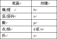 為筆畫提示區(qū),上方是常見筆畫:「一 丨 丿 丶 乛」,右下方為各筆畫拼音的首字母。 您可以在此區(qū)域用鼠標(biāo)點(diǎn)擊輸入筆畫,也可以通過鍵盤敲入hspnz等輸入筆畫。具體筆畫以及對(duì)應(yīng)的按鍵如下:
