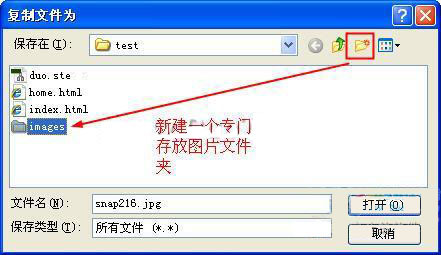 這時我們就可以將圖片復(fù)制的網(wǎng)站站點(diǎn)目錄下,一般情況下,圖片文件專門會有一個存放文件夾,我們可以點(diǎn)擊新建按鈕,創(chuàng)建一個圖片文件夾。