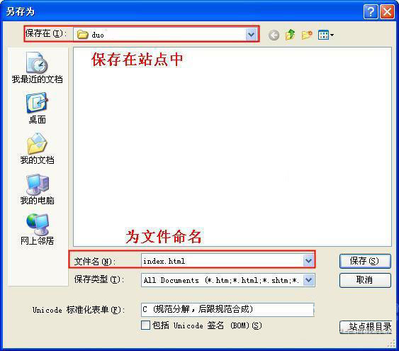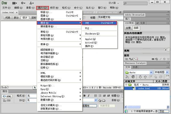 2、將新建的html項目進行保存,新建—保存(如圖2所示),將文件保存在站點中,并命名為“index”(如圖3所示)。這里提醒一下在插入swf之前,建議先對文件進行保存,否則將無法順利進行插入。