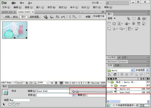 選中添加鏈接的圖片區域后,在屬性窗口鏈接中就可以拖動“指向文件”按鈕,為圖片添加超鏈接。