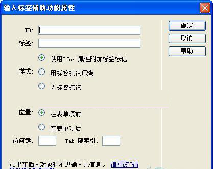 3. 在“輸入標簽輔助功能屬性”對話框中,各項的解釋及應用方法如下: