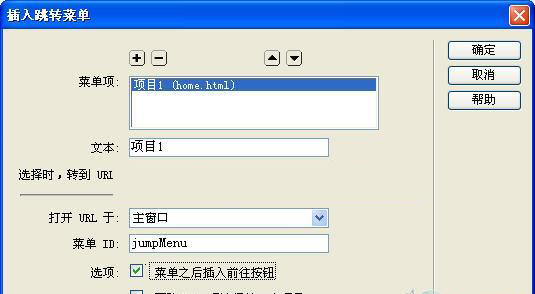 選項之菜單之后插入前往按鈕:選擇此項,在菜單后面插入“前往”按鈕。在瀏覽器中點擊該按鈕,可以跳轉到相應的頁面。