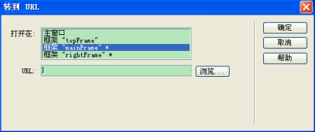 “轉(zhuǎn)到 URL”行為可以讓用戶在當(dāng)前窗口或者指定框架中打開一個(gè)新頁面。不僅可以由不同的事件來執(zhí)行,而且對于一次改變兩個(gè)或兩個(gè)以上框架的內(nèi)容特別有用。